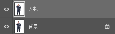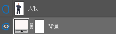 一番上に人物レイヤー、その下に背景レイヤーが来ていて、