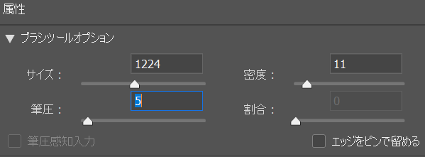 筆圧→一気に変えるのではなく少しずつ調整したいので少なめにする