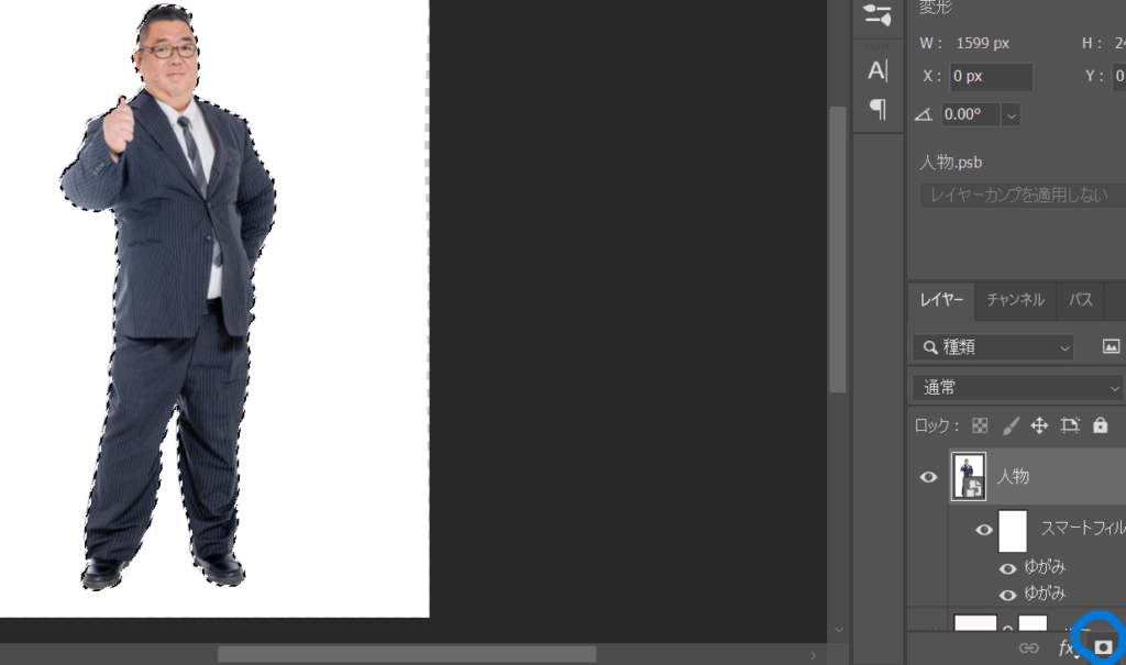 人物が選択されたら、右下のレイヤーマスクをクリックすると切り抜かれます。